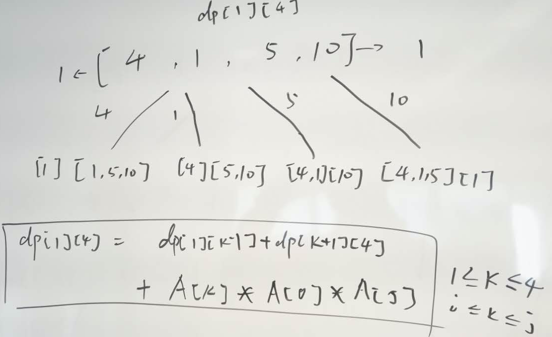 - 和stone game开始一样, 先画搜索树, 因为任意一个气球都可以作为最后被打爆的气球, 如果定义剩下i个气球被打爆能达到最大值的话, 因为并没有规定气球要从头按某个顺序打爆, 所以我们并不知道剩下的这i个气球是在哪一个区间里面的i个气球(也就是说不知道头和尾在哪)