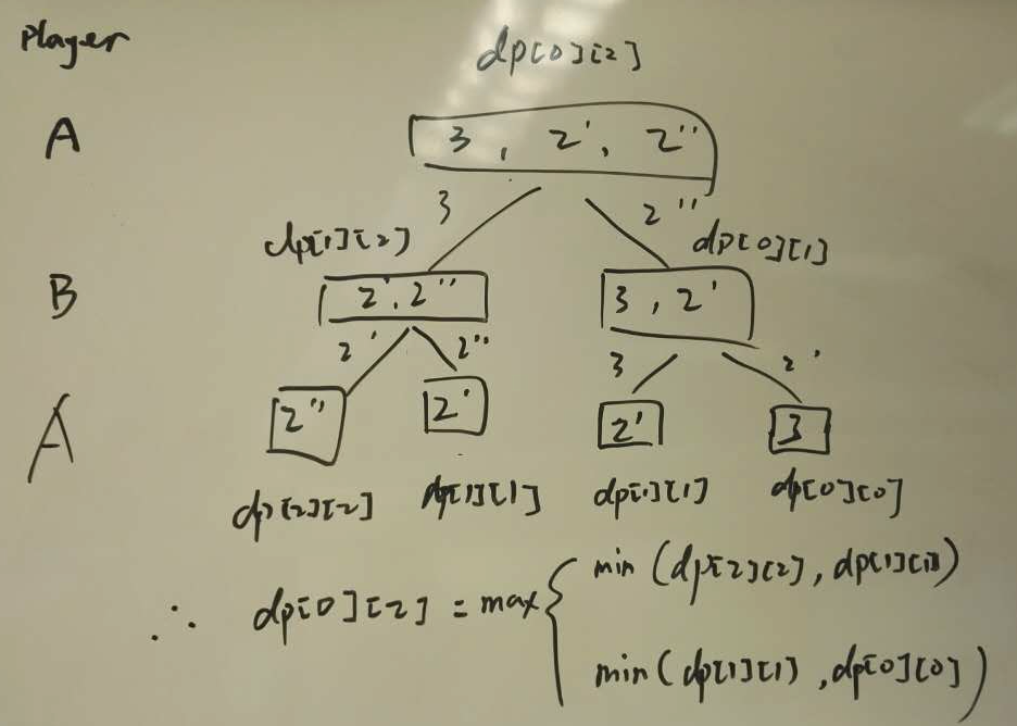 - left = min(dp[i+2][j], dp[i+1][j-1])+coin[i] [i+1,j]