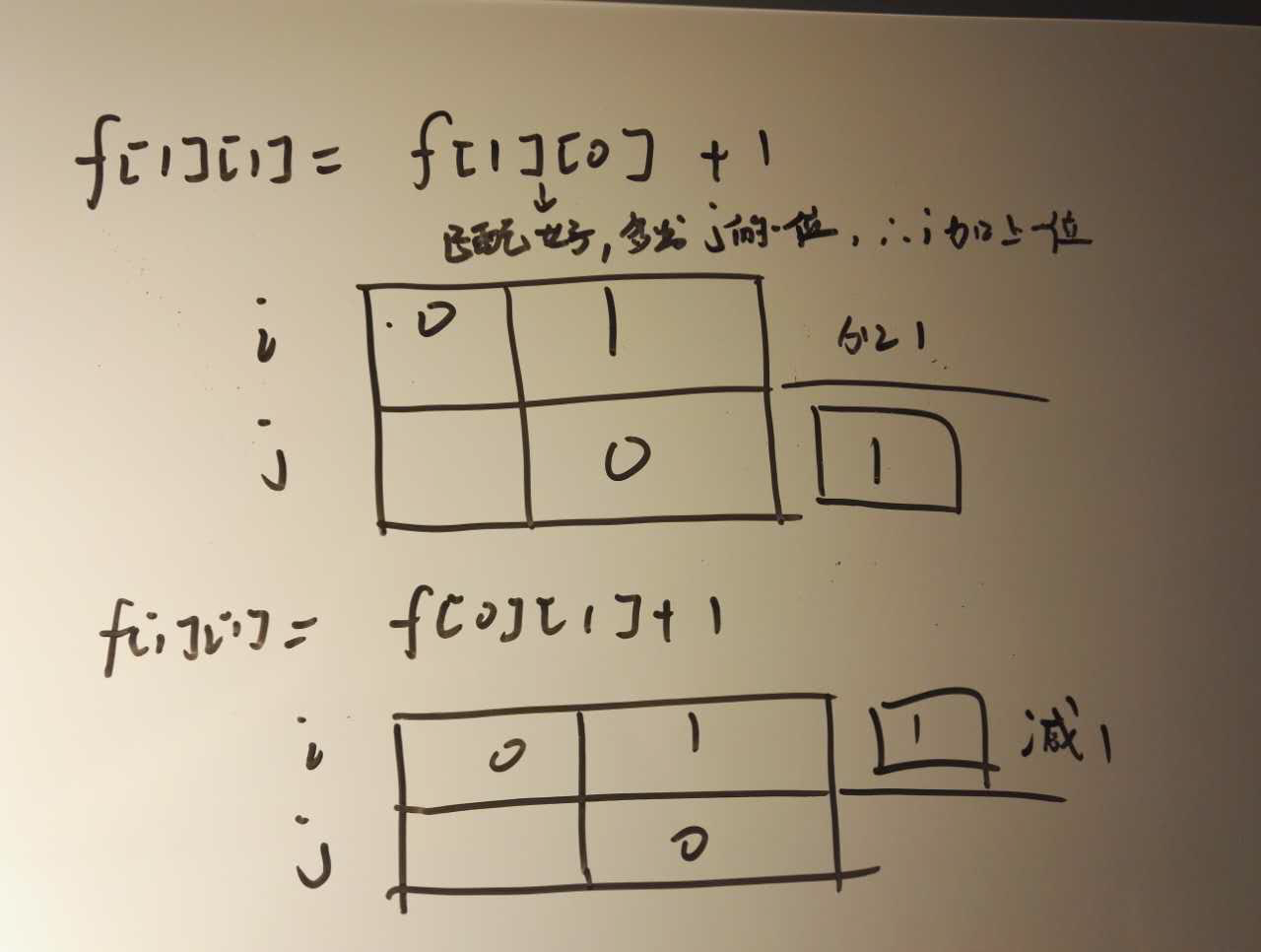 dp[i][j] = dp[i - 1][j - 1] + 1;